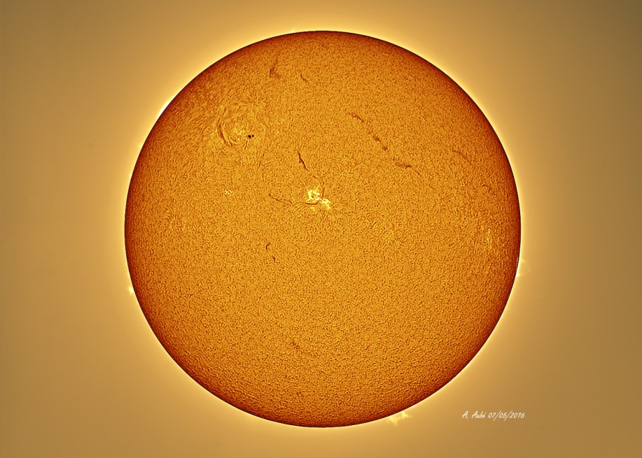 Soleil FD 07052016 Publié par A. Aubé le 8 mai 2016 C'est une image pour 07 Mai 2016:Soleil en Ha & essaie avec un Lunt35 Modifié – May 07, 2016: Ha Sun & Lunt35 modification tested.. Navigation des images ← Précédent Suivant →
